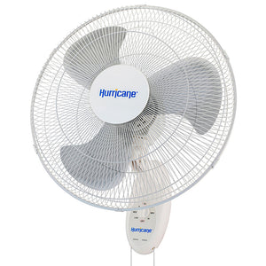Hurricane Supreme Wall Mount Fan These excellent quality wall mount fans feature 3 speeds with a speed control knob and cord. They can oscillate 90 degrees or be locked in place. The fan head can also be rotated up and down for more directional control. Both are very quiet and efficient.